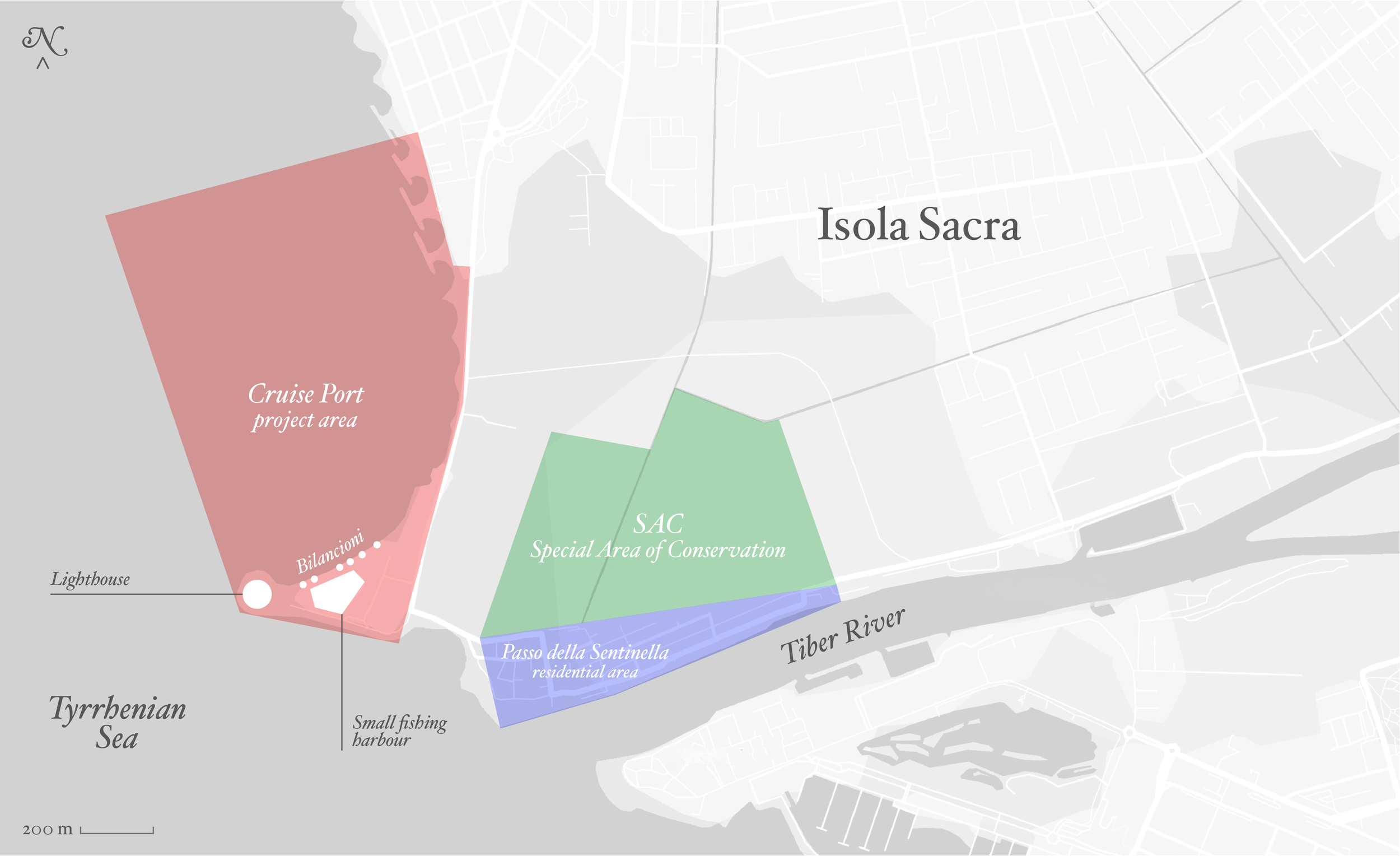 The entire area concerned lies within a delicate context of great landscape, historical, and social value. The presence of a lighthouse, the bilancioni (wooden fishing structures), and a small fishing harbor make this place particularly evocative. Framing it all are the Tiber River, the residential area of Passo della Sentinella, and a Special Area of Conservation (SAC) — a stretch of land characterized by a brackish marsh that constitutes an environmental asset of European interest.