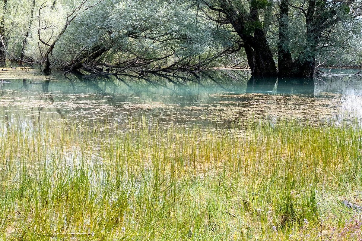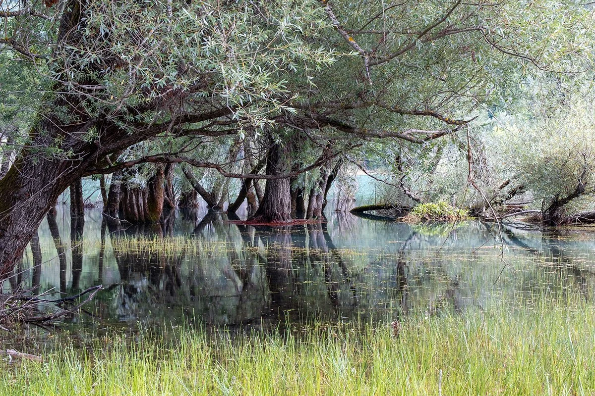 The greens shift in shade and brilliance. From left to right; Black pines along the Marsicana road, March 2024 - Willows along the Sangro river, May 2024 - Trees partially submerged in Lake Barrea, July 2025.